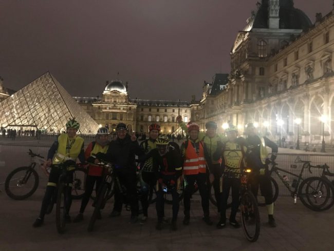 Partis de la Gare de Chilly à 19h, la descente vers Paris se fait via la Coulée Verte. Arrivés dans le quartier de la Gare Montparnasse, nous prenons la direction du Louvre où nous profiterons d’un apéritif vin chaud et fromage.