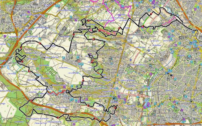 Parcours pour les jeunes enfants, leurs accompagnants ou des personnes novices en VTT qui veulent faire une ballade accompagnée sans difficulté. Nous proposerons, pour ceux qui le souhaitent, 2 départs accompagnés par des membres de notre Club à 9h15 et 10h. Il partira comme les autres du gymnase David Douillet et traversera le Bois des Templiers. Ensuite, vous parcourrez la plaine de Balizy avant de monter vers Ballainvilliers. Le retour se fera en longeant l’yVeTTe jusqu’à l’arrivée.