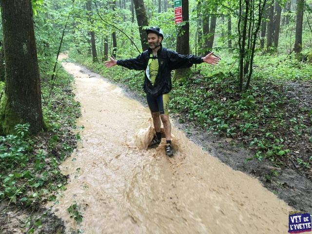 Au total, un moment très agréable et très ludique malgré la météo, dont on se souviendra longtemps ! En 25 ans de VTT, jamais je n’avais connu de telles conditions avec des rivières sous nos roues.